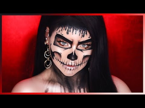 Das wohl berühmteste, glamouröse Halloween-Make-up ist der gute alte Totenkopf. Viele Schmink-Liebhaber holen sich die Inspiration bei den mexikanischen Totenköpfen, Calavera, und zaubern knallbunte, süße Looks. Die holländische Make-up-Künstlerin Nikkie de Jager, bekannt als Nikkie Tutorials, kann dem Trend auch nicht entfliehen. Sie zaubert jedoch eine schlichtere Variante des Totenkopfs, ganz in schwarz-weiß gehalten, mit geringen Farbakzenten.