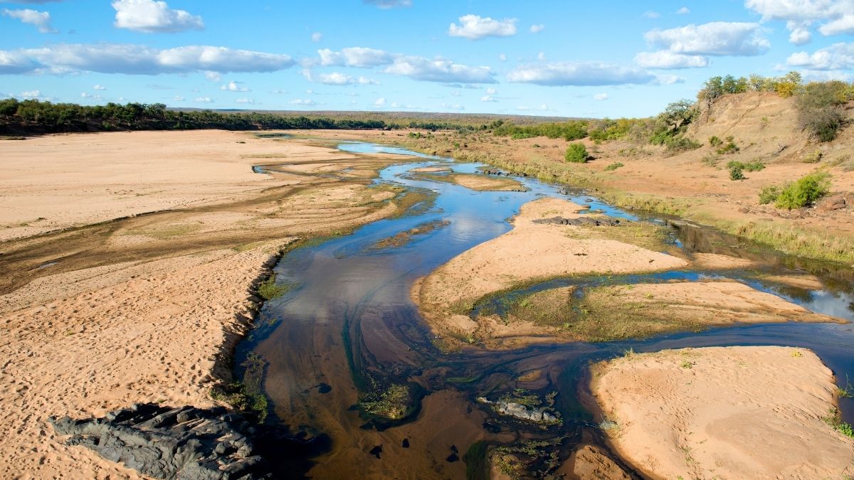 Durch die Größe des Gebietes entstehen verschiedene Formen der Landschaft: Der Norden ist eher felsig und karg, während der Süden durch den Sabie-Fluss das grünste Gebiet des Parks ist.