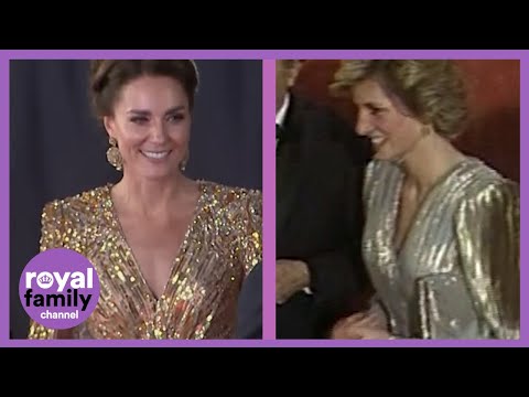 Auf der James Bond „Keine Zeit zu sterben“-Premiere zog Kate Middleton in ihrem goldenen Jenny Peckham Kleid alle Blicke auf sich. Selbst Daniel Craig machte ihr ein Kompliment zu ihrem blendenden Auftritt! Beim Blick ins Archiv wird sofort klar, woher die modische Inspiration kam. Natürlich von Lady Diana. Die erschien 1985 in einer sehr ähnlichen, Silber schimmernden Bruce Oldfield Robe auf der James Bond Premiere von „Im Angesicht des Todes“ und shakerte – wie Kate – mit Bond, James Bond. Nur hieß der damals Roger Moore.